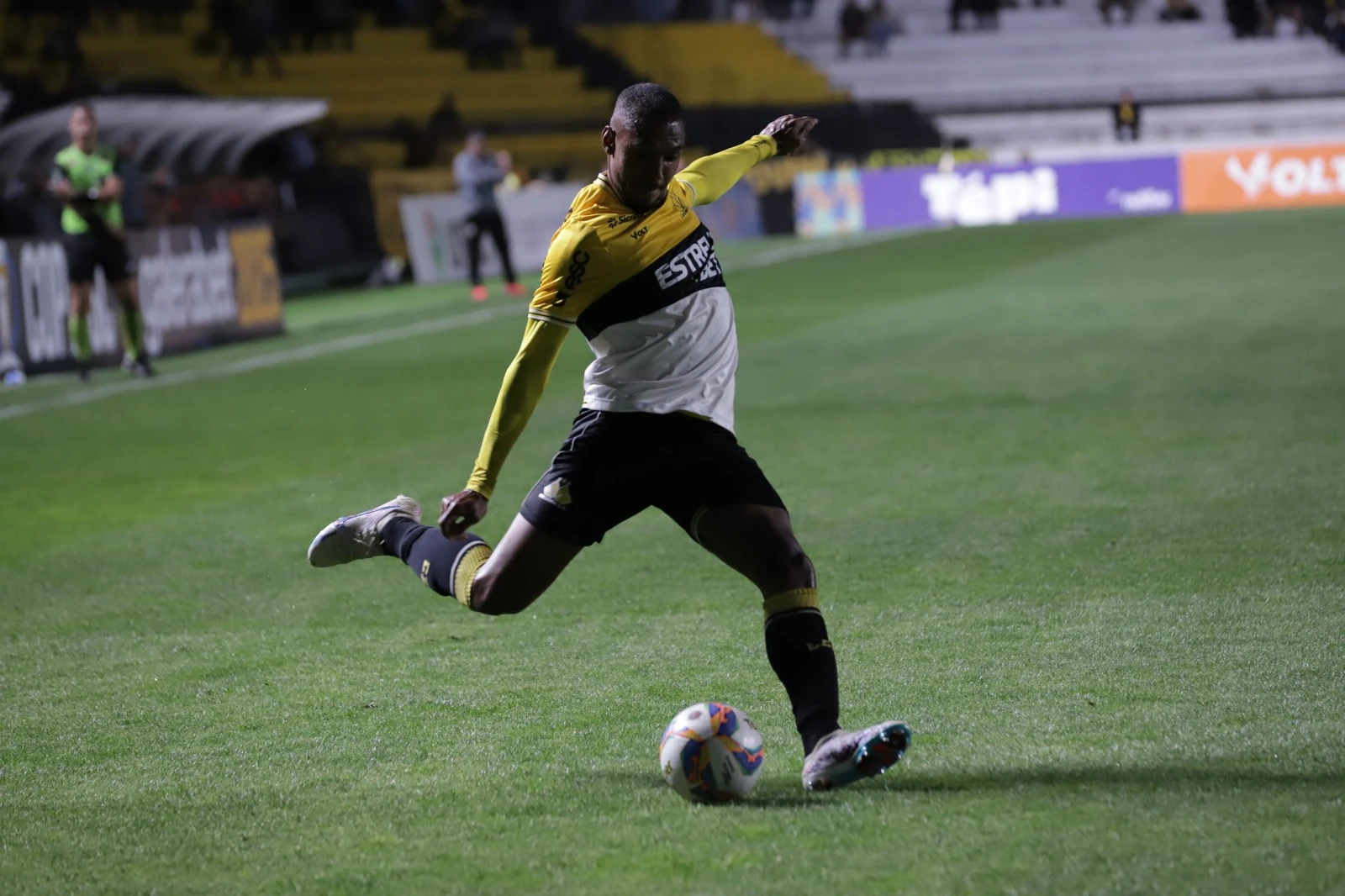 - Davi Gabriel cobrou para o Criciúma e chutou no meio do gol. Porém, a bola bateu no travessão.